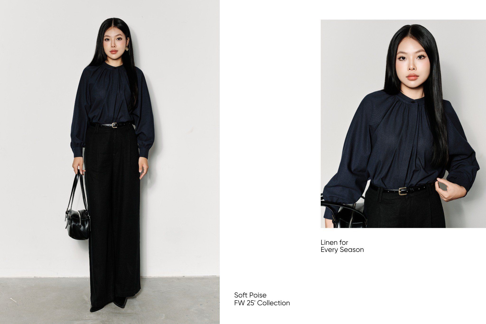 Độ dày của linen cũng vừa phải, rũ tự nhiên giúp dễ dàng phối layer, linh hoạt qua nhiều mùa, giữ được tinh thần effortless nhưng vẫn đầy chủ đích.