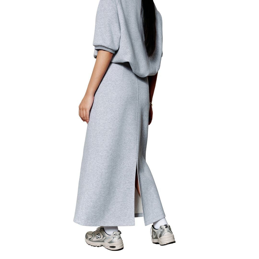 Phom dáng maxi thanh lịch, cạp chun mềm vừa vặn, xẻ sau tinh tế giúp di chuyển thoải mái mà vẫn kín đáo và hiện đại.