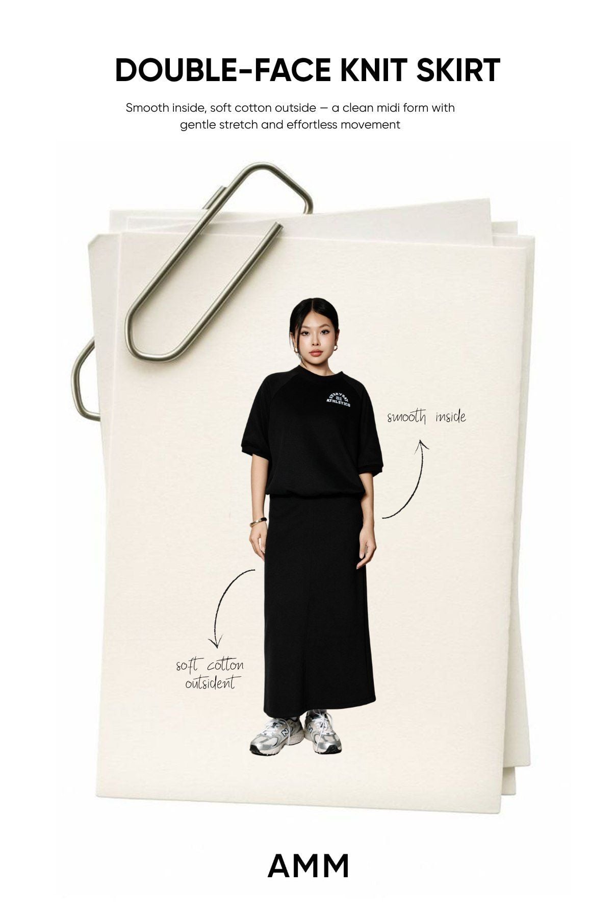 Một item dễ phối cùng áo nỉ hay áo thun ôm nhẹ – tối giản, tôn dáng và mang vẻ effortless rất đặc trưng của AMM.