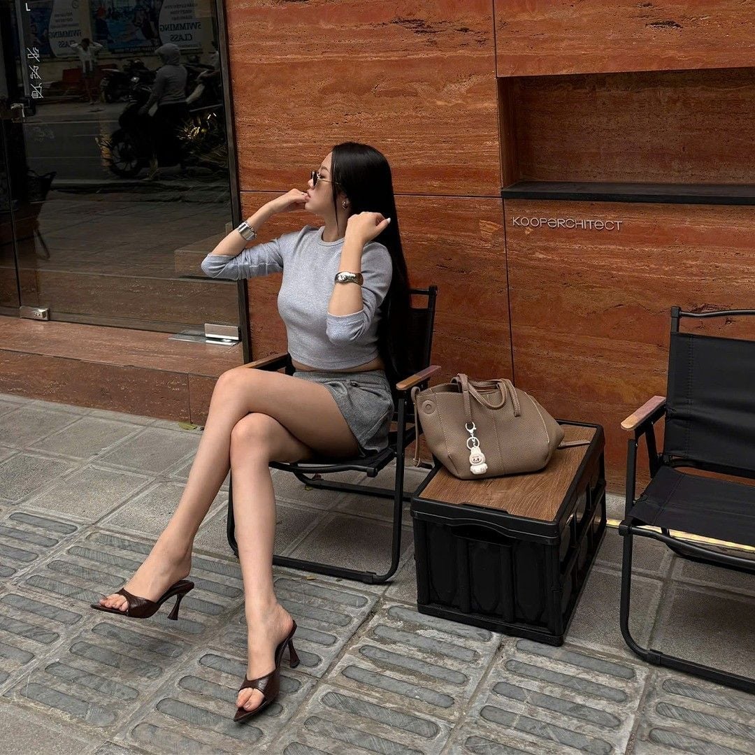 Chiếc áo dài tay dáng crop – chất liệu rib mềm, ôm nhẹ, vừa đủ gợi cảm mà vẫn tinh tế.