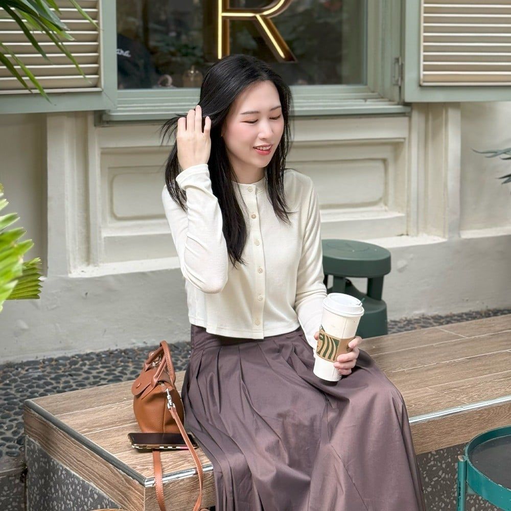 Khi kết hợp cùng chân váy xếp ly, tổng thể trở nên gọn gàng, nữ tính theo tinh thần hiện đại, dễ ứng dụng trong nhịp sống hằng ngày.